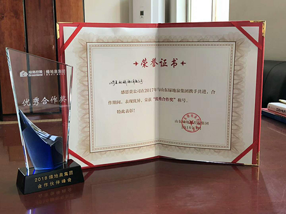 祝賀戰略合作伙伴綠地泉集團授予公司優秀合作獎