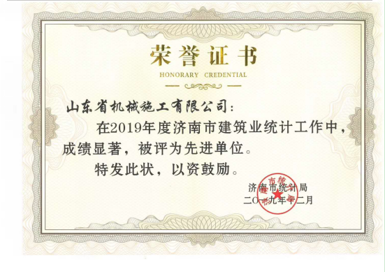 山東省機械施工有限公司被評為濟南市建筑業統計工作先進單位