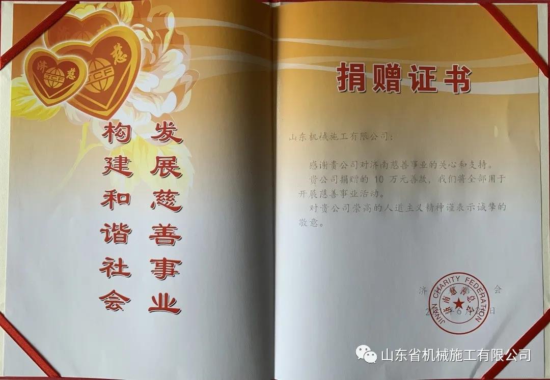 山東機施作為成立60多年的本地企業,在發展壯大的同時,不忘回饋社會,在沈繽董事長的帶領下,常年致力于公益事業,愛心善舉遍及山東各地,覆蓋了扶貧濟困、捐資助學、扶殘助殘、疫情防控等各個領域,捐款捐物累計近百萬元,用實際行動詮釋企業的大愛精神。