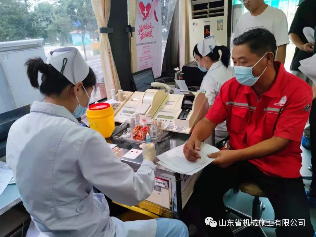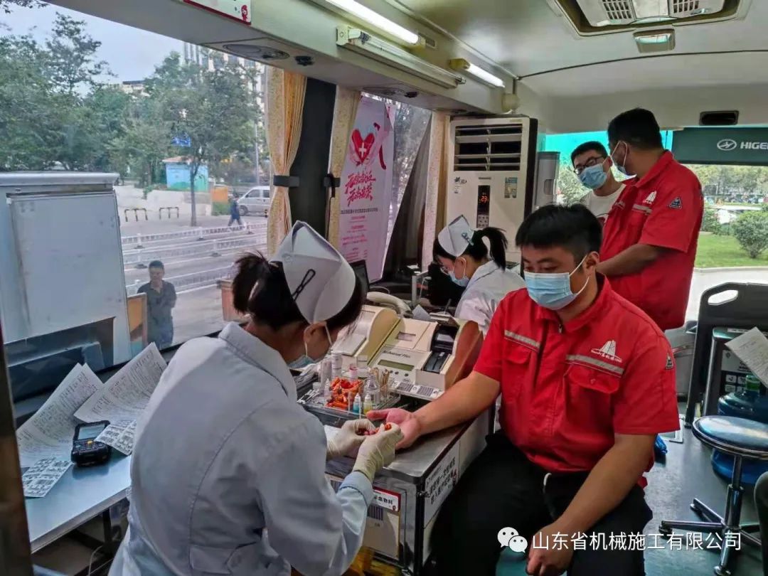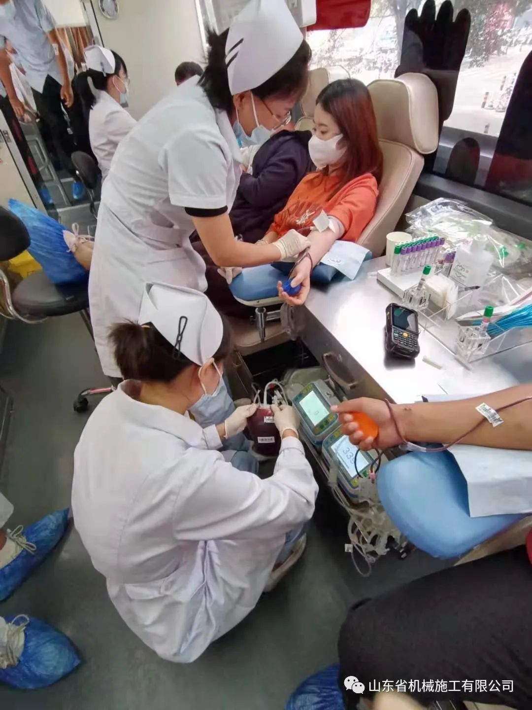 因受疫情及學生放假影響,省血液中心血庫庫存告急,在得知該情況后,山東機施立即動員職工參加無償獻血活動。作為常年參加公益、慈善活動的董事長沈繽第一個報名,在沈董的大愛精神引導下員工們也紛紛報名參加。省血液中心對于公司員工的善舉表示衷心的感謝,并于8月2 8日安排采血車來到公司上門采血。