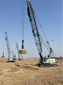 近日,山東省機械施工有限公司中標濟南遙墻國際機場二期改擴建工程東飛行區地基強夯工程項目,總強夯面積約40萬平方米,實現23年度經營開門紅。為全力支持項目建設,開工伊始,公司即投入700余萬元新購置多臺施工機械,現已陸續投入本項目建設。