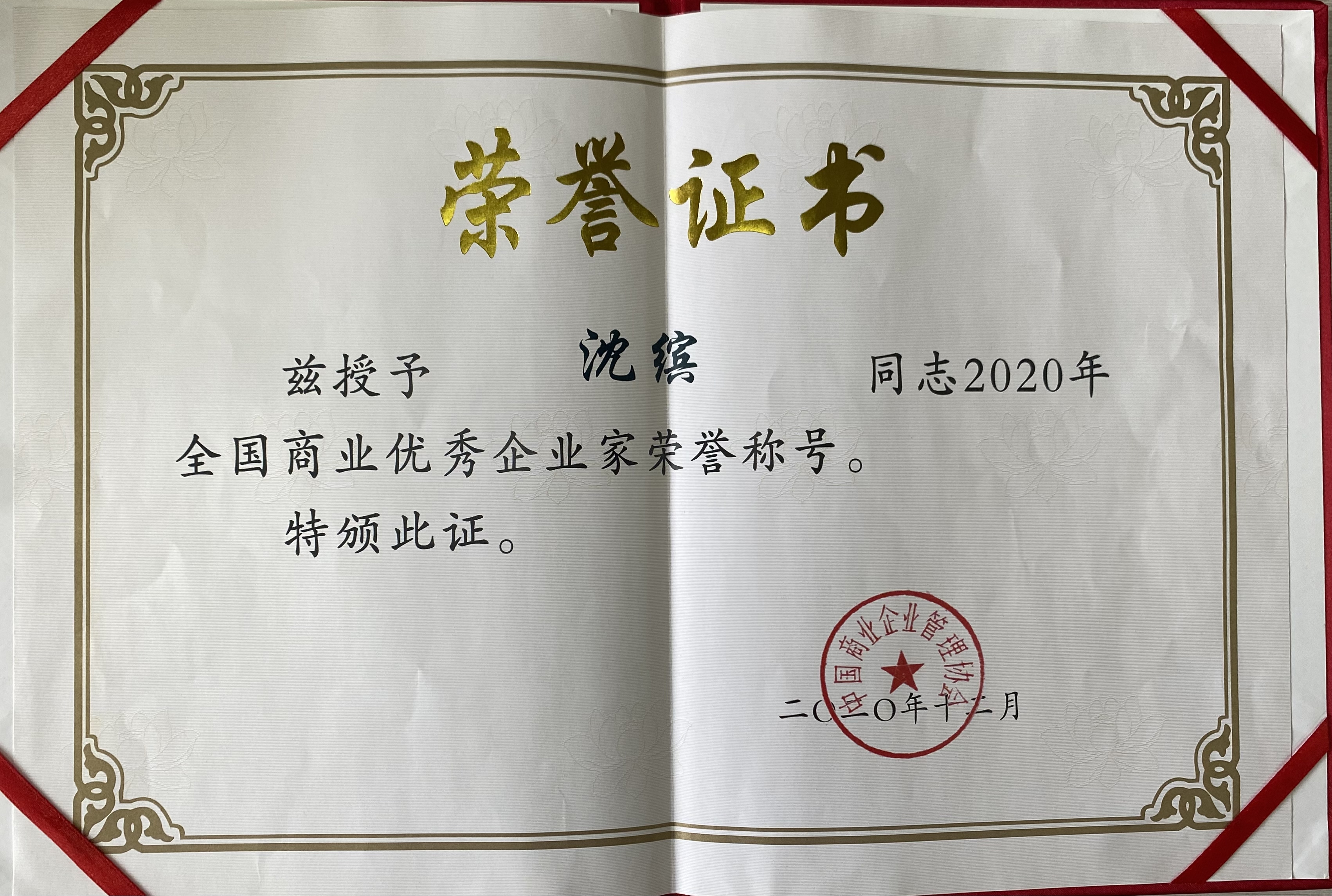 喜報(bào)|熱烈祝賀沈繽董事長(zhǎng)再次榮獲“全國(guó)商業(yè)優(yōu)秀企業(yè)家”光榮稱號(hào)