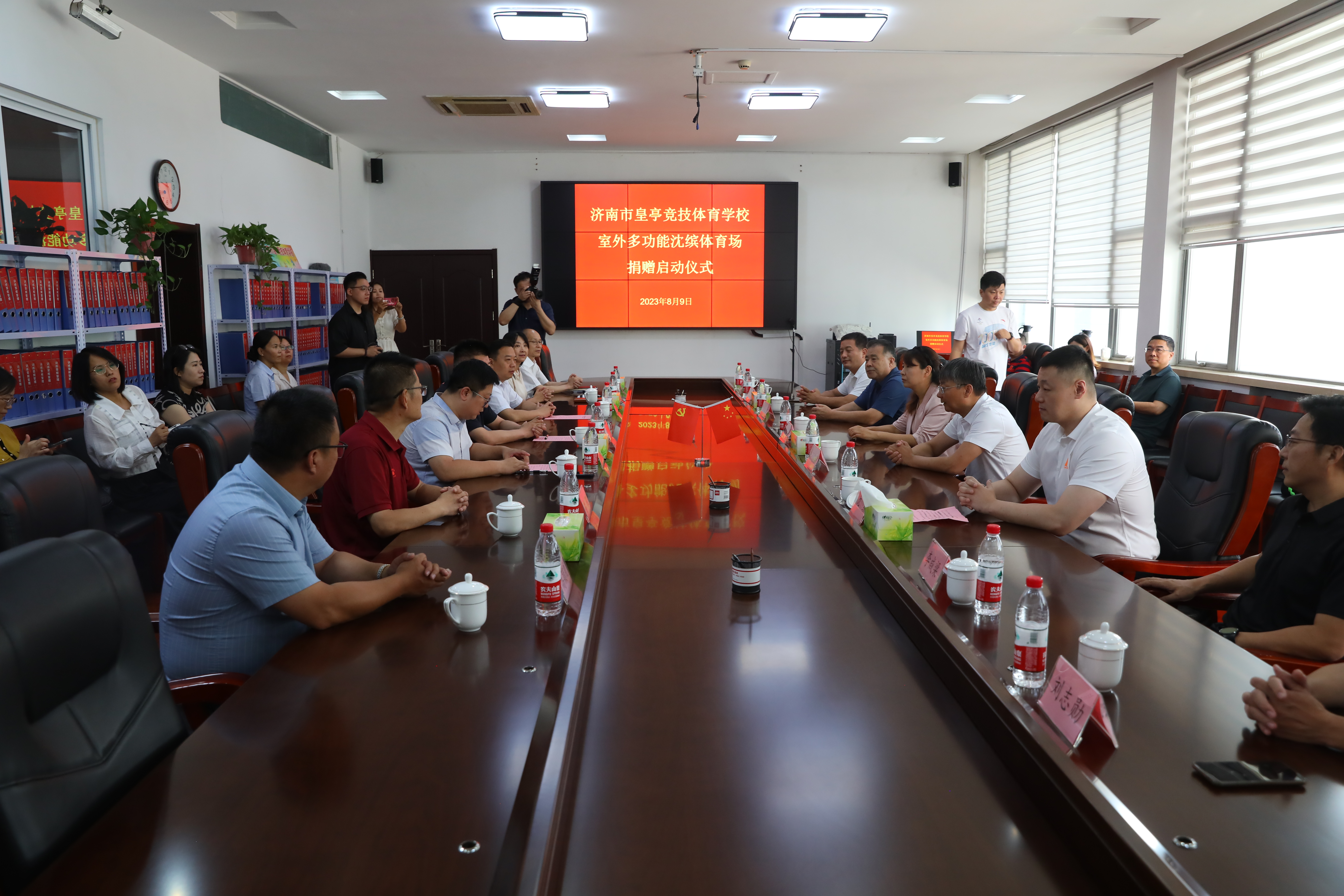 捐建儀式上,王建軍副局長、王啟濤書記表達了對沈繽董事長的感謝,表示在接下來的各項工作中,濟南市皇亭競技體育學校進一步提高政治站位,繼承和弘揚體育精神,腳踏實地、拼搏進取,認真踐行黨的二十大精神,利用好這個體育場,講好體育故事,搞好體育訓練,用更優異的成績回報社會。同時,也希望更多的人能夠像沈繽先生一樣,心系母校、心系濟南體育,加強溝通與合作,切實為濟南市體育事業的發展作出積極貢獻。