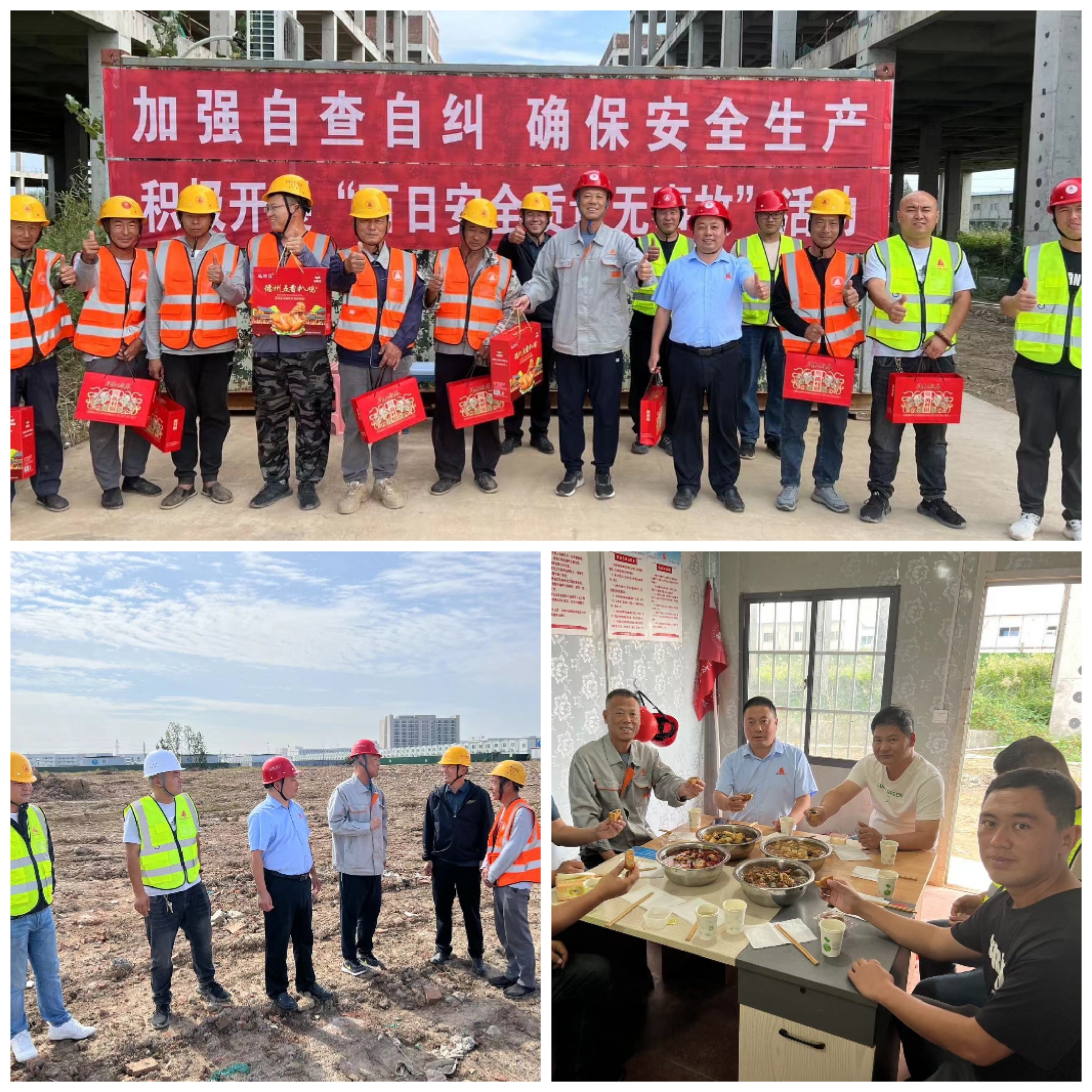 丹桂飄香時,月圓中秋到。9.29日,農歷八月十五,在千家萬戶闔家團圓的日子,帶著對堅守崗位職工的牽掛與祝福,公司董事長沈繽、副董事長周廣泉、財務總監徐占全、總經理楊明、常務副總經理劉志勛前往項目施工現場,看望慰問假期堅守一線的員工。