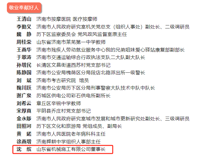 喜報|熱烈祝賀沈繽董事長榮獲“濟南好人榜”“敬業奉獻好人”稱號