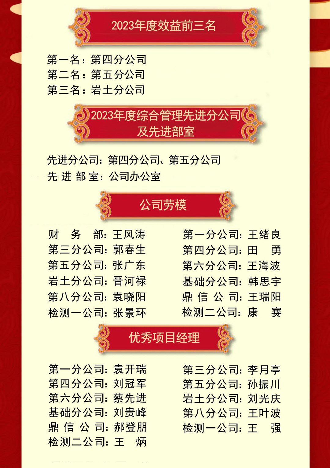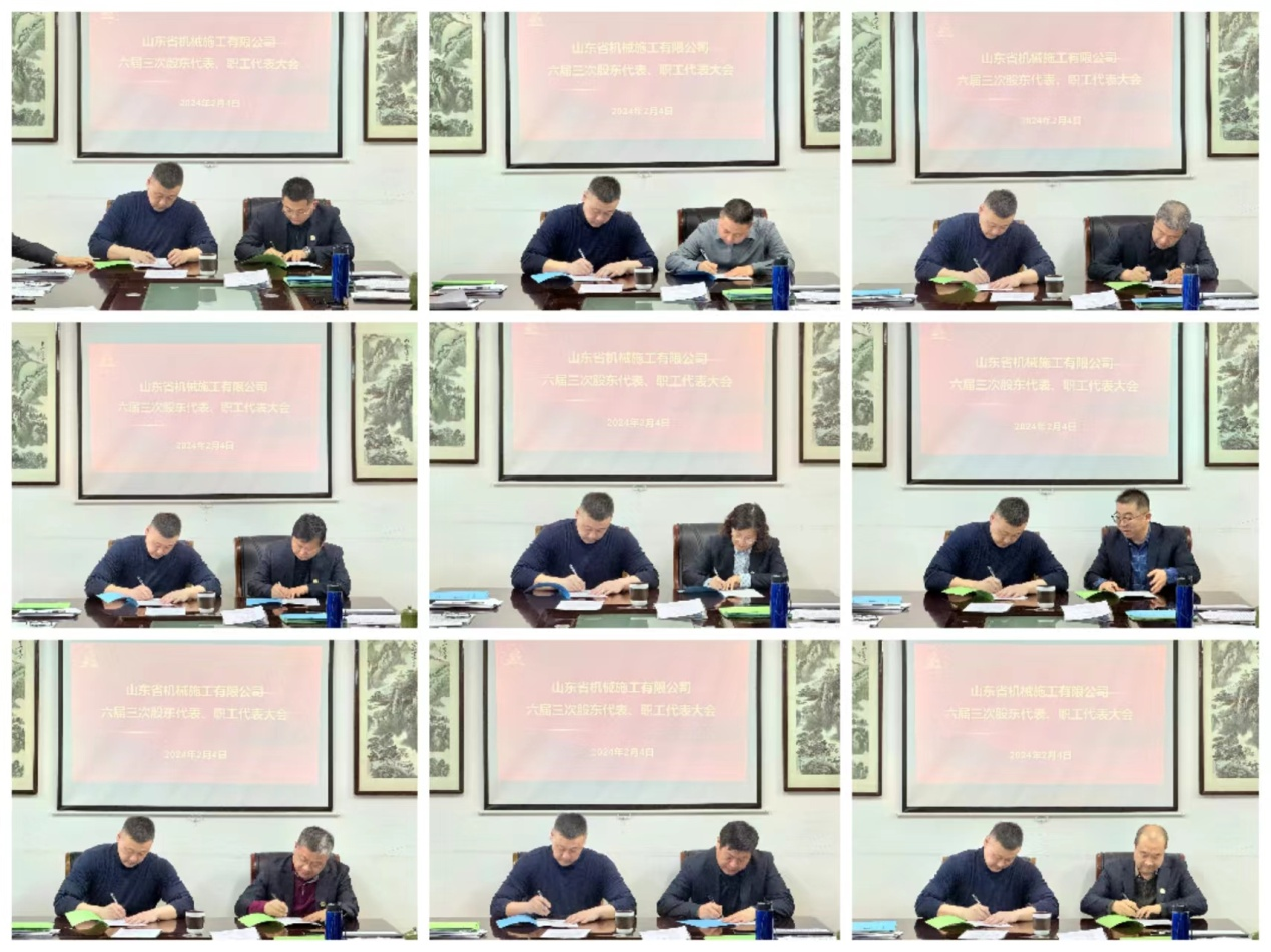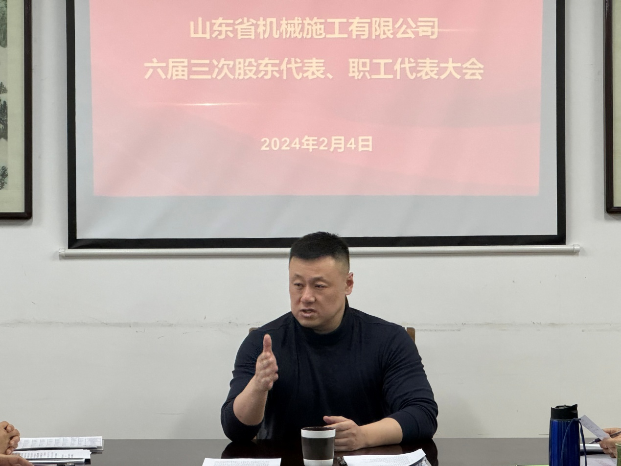 2024年2月4日,山東省機(jī)械施工有限公司第六屆三次股東代表、職工代表大會(huì)在公司會(huì)議室召開。公司股東代表、職工代表、先模代表近40余人參會(huì)。會(huì)議審議通過(guò)了董事長(zhǎng)行政工作報(bào)告、監(jiān)事報(bào)告、財(cái)務(wù)預(yù)決算報(bào)告等事項(xiàng);會(huì)上沈繽董事長(zhǎng)與各承包人簽訂2024年承包合同;表彰了2023年度先進(jìn)單位和個(gè)人;動(dòng)員全體職工在新的一年統(tǒng)一思想、堅(jiān)定信心、再創(chuàng)佳績(jī),為努力開創(chuàng)山東機(jī)施各項(xiàng)工作新局面做出更大的貢獻(xiàn)。